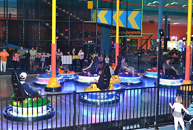 Behind the Climbing Walls, adventurers will find the Spin Zone bumper cars – which aren’t typical bumper cars; when these get hit they propel into a literal spin. To the right of the Spin Zone is the virtual reality area, which can look funny to people on the outside, but to those wearing the goggles, it’s a whole different world. To the left of the Spin Zone and Climbing Walls are the various trampolines. In addition to a big trampoline, there’s the Drop Zone, where participants land on an inflatable landing pad, the Runaway Tumble Track – for those looking to perfect their cartwheels and aerials, and the Slam Dunk Zone – for the next Michael Jordan.