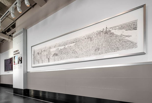 You'll also be able to view a detailed, panoramic illustration of NYC by famed British artist Stephen Wiltshire, which incredibly was drawn only from memory. A three-minute video of the artist's process describes how the piece was created over four days in residence in this very space.
