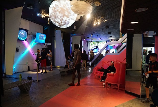 There's still immersive games of Fruit Ninja, several flight simulators and the typical boxing/jousting/racing equipment. But this new VR World location also offers a lot more. Arizona Sunshine Free Roam transports up to four players into the heart of a zombie apocalypse; a Cirque Du Soleil experience allows guests to step into the contemporary circus' most thrilling moments; and Tower Tag, which is featured in the front window to get the attention of passers-by, allows gamers to jump from tower to tower to evade the enemy.