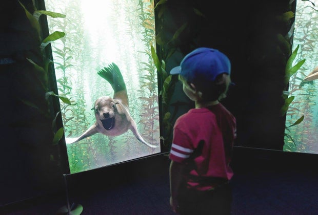 At the end of the maze, visitors are rewarded with a series of screens that feature adorable interactive sea lions. Stand in the circle just in front of a screen, move left or right, and watch your friendly sea lion respond. See if you can figure out how to get it to flip and do other tricks for you. It wasn't easy getting my 8-year-old to say goodbye to this part of the experience.