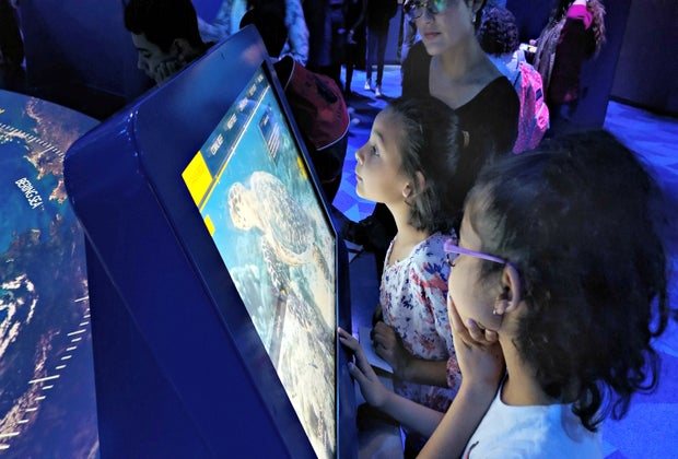 The show continues into the National Geographic Exploration Hall, where you can learn more about the sea creatures you've encountered and have a fun photo taken with an oceanic backdrop before heading into a huge learning center. Interactive screens and games provide an in-depth look at sea animals and their habitats. Visitors emerge from their ocean journey in the retail experience where they can peruse themed apparel, toys, games, books, and other souvenirs.