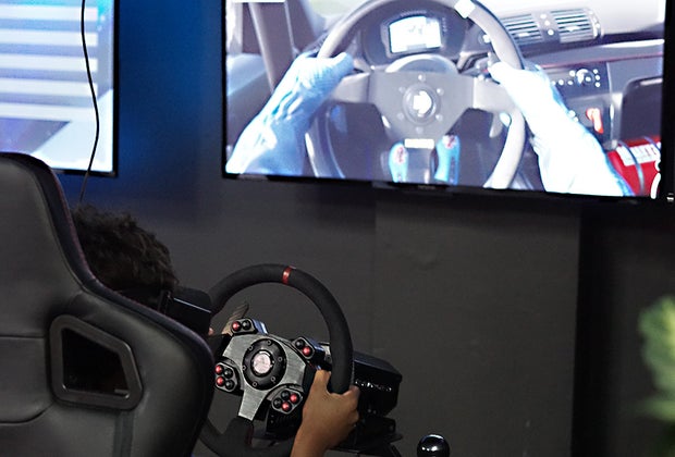 For a more passive experience, try one of the two different sets of simulators. In a sit-down simulator, you try your hand at car racing, though there are no gimmicks here. The cars are every bit as difficult to drive as a real race car. The full-motion simulators let you feel every bump and turn. Spinning out on the virtual track is likely to leave your head spinning in the real world.