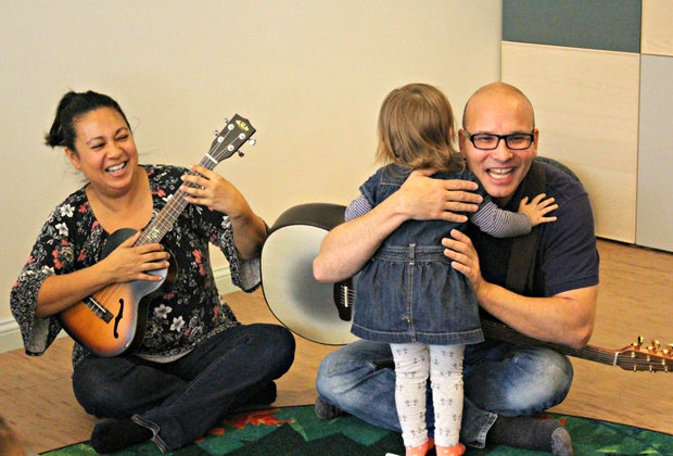And feeling comfortable is a running theme here, meaning...you! "Getting our parents to understand that their voice is the most important voice to their child regardless of their own ability is such a powerful and important lesson," Owen explains. "You don’t need to be a trained singer with a fantastic tone for your child to think you’re a rock star!" Translation: Get really to sing and bop along in class.