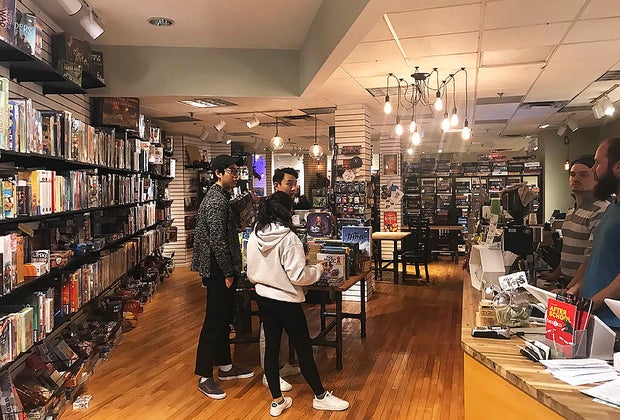 Walking into Hex & Co., you're immediately hit with two things: 1) Who knew this many games existed? and 2) the staff is extremely friendly and helpful. The front half of the space houses the food counter/kitchen area and the retail section, which is filled loads of new games and related memorabilia for purchase, and the guys behind the counter are more than willing to make suggestions. The back half is lined with shelves stacked high with the aforementioned 1,000+ games and tables. Pay for your day pass, then head back and play as few or as many games as you'd like.