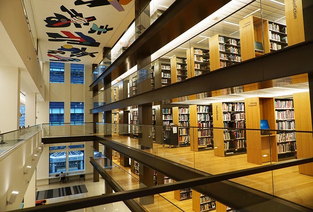 Visitors who remember the old Mid-Manhattan Library are likely to be wowed by the renovation, which cost $200 million and officially debuted to the public at the beginning of June. Gone are the cramped, claustrophobic stacks of books, the '70s-era drop ceilings, and the harsh fluorescent lighting. Instead, it's been replaced by an airy, light-filled space, well-appointed with funky artwork, tons of seating, and plenty of comfortable places to lounge.