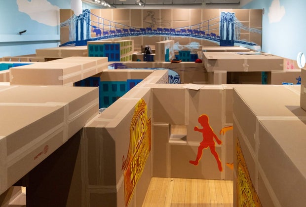 Kids of all ages love navigating BCM's new exhibit featuring a maze created from corrugated cardboard boxes. Full of twisting corridors and tunnels, the maze is set against the backdrop of a painted NYC cityscape with landmarks at every turn. There are special areas designated for the youngest adventurers.