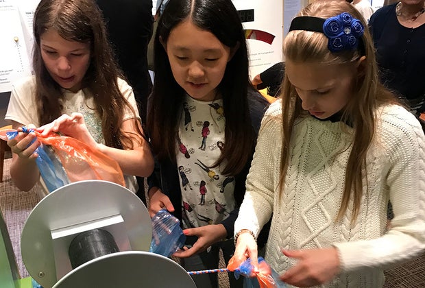 One standout station features a foot-long miniature Inka suspension bridge supported by rope cables that can be tightened or loosened to adjust the tension; next to it, visitors are instructed to build a European-style stone arch bridge out of three dense blocks. When construction is complete, they vigorously shake the structures from handles at the base to determine which one can better withstand an earthquake. (Engineers still incorporate both methods to this day.) At a nearby station, kids learn the Native technique for making rope strong enough to support a suspension bridge from weak materials like grass—and then put their skills to the test by tightly twisting their own tough cords out of flattened orange and blue plastic bags.
