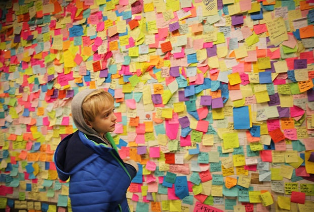 Top photo: The New-York Historical Society has preserved a portion of the Post-it note messages that sprang up in Union Square in the wake of the election. Head to the museum to add your own note on Inauguration Day. Photos by Shira Kronzon.