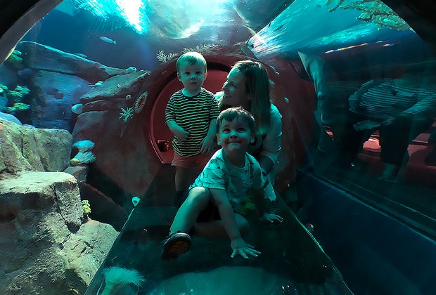 Crawl through a glass tunnel to feel like you're in the depths of the ocean, surrounded by marine life.
