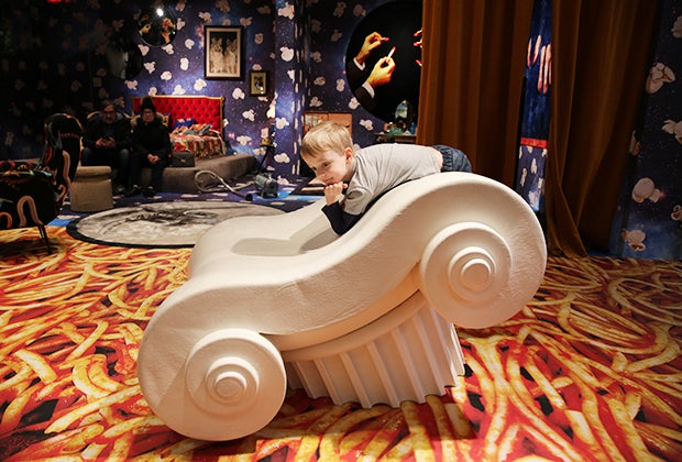 Visitors can explore multiple areas set up like an apartment (bedroom, kitchen, and so on), and all bedecked in psychedelic colors and outfitted with offbeat props that are sure to thrill kids and adults alike.