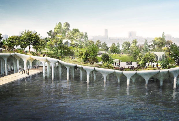 Manhattan's getting a brand new park suspended over the Hudson River. Rendering courtesy of Little Island