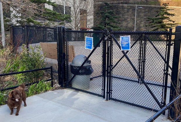 While NYC's public parks are still open, the spaces available for public use are getting increasingly smaller. Weeks ago, the city started removing basketball hoops and tennis nets to discourage group play; then, playgrounds were locked. Now, dog runs have been shuttered, too.
