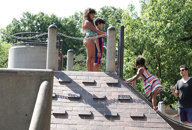 Named for its proximity to The Met's Egyptian Wing, and inspired by ancient Egyptian relics and architecture, this playground features pyramids and climbing structures where kids can play archeologist. (Fair warning: Appropriately enough for a desert-pyramid-themed play zone, there's little shade!). There are plenty of classic play features too, from swings, sand, and sprinklers to tube slides and climbing nets.