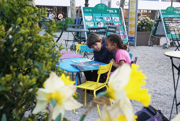 Peruse books in the Reading Room: This outdoor space, located at mid-park near 42nd Street, offers an outdoor space stocked with well-worn children's books and kid-sized tables and chairs. The park hosts frequent family performances, including its summertime Saturday series with story times, musical performances, magic shows, and character appearances.