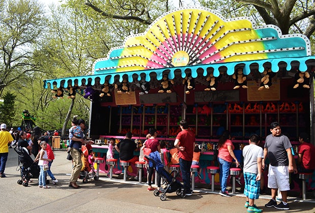 In addition to the rides, there are also games and plenty of food-cart staples such as hot dogs, pretzels, and ice cream. Just take note: Bathrooms are outside the gates of the amusement park and a bit of a jaunt down the path.