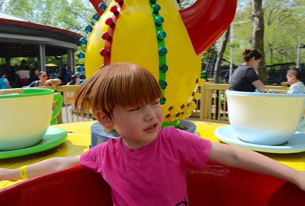 The new teacups ride brings the total number of rides at Fantasy Forest to seven, including the carousel and not counting the fair-style games like a ring toss. As we headed through the park, I didn’t even have to point my kids in the right direction of the newcomer. The bright primary colors and inviting charm of the teacups spoke for themselves.