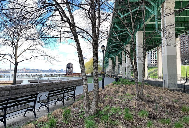 Nestled under the West Side Highway, you'll find beautiful views overlooking the Hudson River.