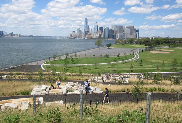 Another fun fact: The scramble of steps built to climb Outlook Hill is made entirely of granite rocks from the island's old seawall. They make the trip to the top an adventure instead of inducing complaints from tired kids. If you're traveling with a stroller or in a wheelchair, there's a gently sloping switchback path you can take instead. Either way, it's definitely worth the trip: Awaiting at the top is a breathtaking 360-degree view of New York Harbor. The Statue of Liberty sits front and center to the west but there's plenty to see in all directions.