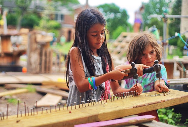 So, what can you expect on a visit to The Yard? Zero interaction from parents. Once you've signed a waiver, you'll be asked to wait outside, while your kids frolic in the 50,000-square-foot free-play space. They'll find loads of recycled materials to craft and create with, including heavy-duty hands-on tools like hammers and saws. Trained "playworkers" are on-site to make sure everyone stays safe. While the main play area is open to children ages 6 and up, parents of younger children can work side-by-side with their kids in the adjacent family adventure play area.