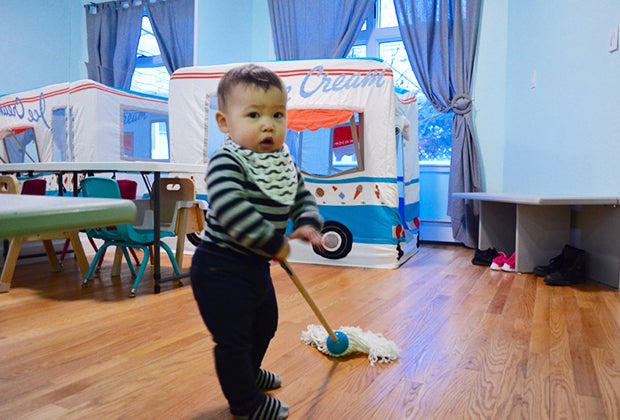 Toddlers love interacting with child-sized versions of home staples.