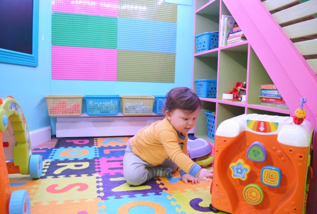 The overall play space is divided into several sections, each nook loaded with a particular type of toy or plaything. With lights that slowly transition colors and musical and tactile toys, the sensory room is a joy of discovery. My 13-month-old son loved sifting through the many bins of clean and well-kept educational toys. This room was definitely his favorite, with a wall lined with locks and light switches.