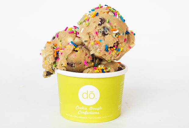 We've been warned of the dangers of eating raw cookie dough, but Kristen Tomlan, DÕ's founder, has created a raw cookie dough that is approved for safe eating. She uses heat-treated flour and a pasteurized egg product, removing any risk of bacteria growing in the dough.