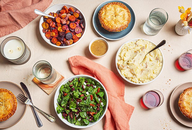If you're planning a vegetarian meal this year, try the meatless feast from the Veggie Grill. The Thanksgiving Pot Pie package includes individual "turkey" and mushroom pot pies plus sides like mashed potatoes, gravy, glazed rainbow carrots, and a baby spinach salad. Sharable mini-pumpkin pies round out the meal. Preorder by Wednesday, November 18.