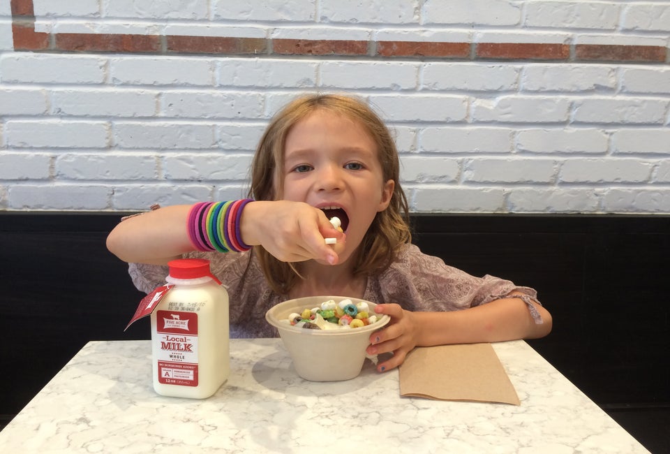 One element in the two-sided menu beckons diners to "Raid the Pantry." The first step is to select a cereal—they have all your favorites from Kellogg's. We went with Froot Loops, Frosted Mini Wheats, and Raisin Bran. Then, select a fruit, nuts and seeds, and "boost." Think big: Pop Tart Crumble, Chai Tea Powder, White Chocolate Chips to name a few.