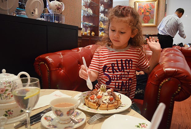 Top photo: The kids can’t wait to get started on the tower of treats during Classic English Afternoon Tea Set. Photos by the author.