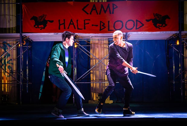 The Lightning Thief: The Percy Jackson Musical on Broadway with James Hayden Rodriguez and Chris McCarrell. Photo by Jeremy Daniel