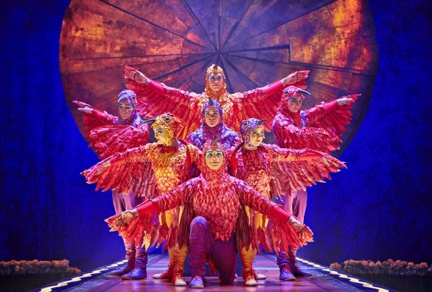 Unlike Cirque's many stadium events, LUZIA is performed in a relatively intimate big top, so audiences are close to the action, and rotating turntables mean everyone gets multiple great views. There's no real plot, just a premise: A goofy traveler (Eric Koller) parachutes into this surreal scene and becomes our passport to another culture. Throughout, all the design elements evoke Mexico. A vocalist in frilly, flower-adorned gowns croons in Spanish; acrobats soar across the stage costumed like tropical birds, and giant puppet bugs buzz and dance to the music.