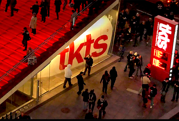 The famous red steps in Times Square a built atop the TKTS booth, though it's not the only one in town. Photo courtesy of TKTS