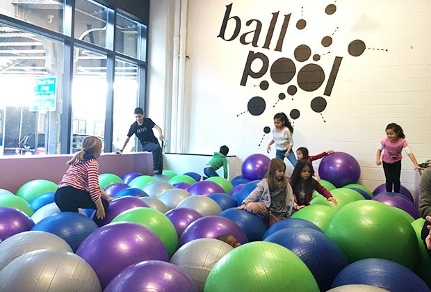 Top photo: A romp in the ball pool was popular among all ages. All photos by the author. Video by Alice Grindling for Mommy Poppins.