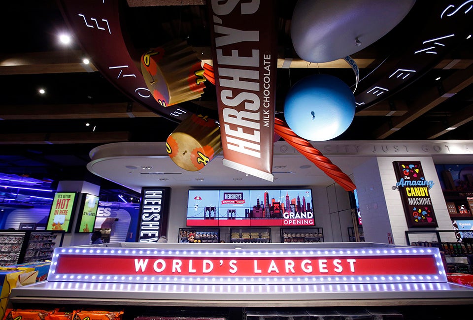 Hershey's Chocolate World is located at 701 7th Avenue and is open daily 9am to midnight.