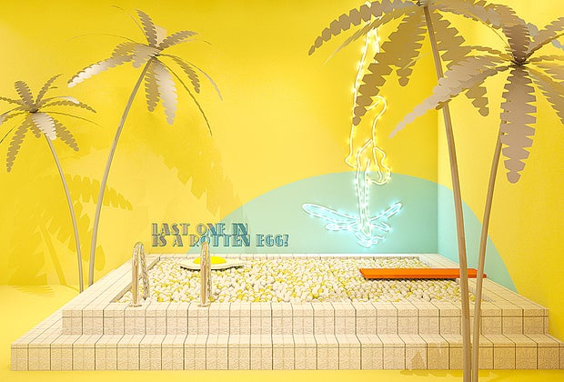 Upon arriving at The Egg House, visitors escape the city streets and immerse themselves in Ellis' apartment—while the host happily snoozes inside. Whimsical, interactive decorations await in the foyer, kitchen, garden (complete with egg-shaped swing), and the pool (where you can dive in for some ball-pit fun!). Six rooms spread over two stories offer plenty of sensory fun, from textures to touch to smells wafting though the air and more.