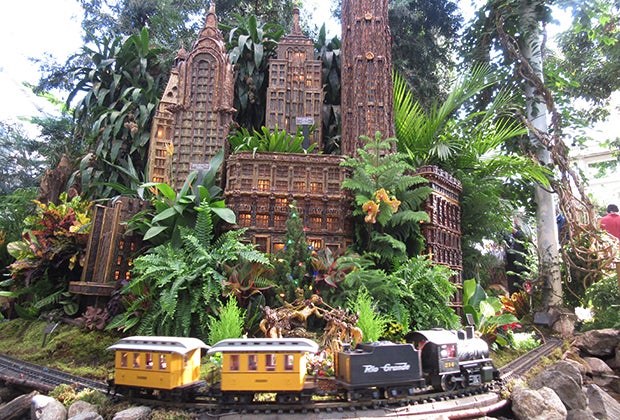 In 2015, the NYBG added about 3,000 square feet of exhibit space and an introductory video that takes visitors behind the scenes; both return this season. The added exhibit space has even more trains and buildings, and the layout allows for up-close views of it all.