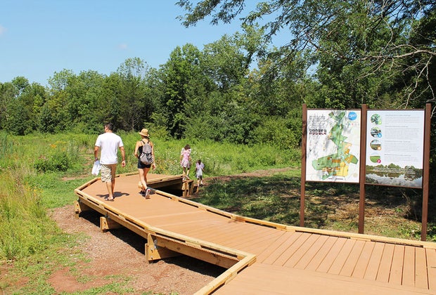 Down the road from Princeton in Pennington, New Jersey is Stony Brook-Millstone Watershed. This amazing nature center and reserve is a perfect place for small children and families to immerse themselves in the outdoors. The organization has trails throughout the nature reserve that wind through wetlands, farms, forest, and meadows. The hike is fun for kids of all ages. My 2-year-old had a blast running along the boardwalk looking for turtles. My family loved the Nature Center; it's a great stop before or after your hike for a close-up look at some of the critters found throughout the reserve. They have turtles, snakes, and fish, as well as educational resources to help kids learn facts about the things they see on their nature walk. There's even a butterfly house! Older kids might also enjoy Geocaching, which is available on the trails, as well. Parking and admission to the nature center is FREE. There is so much here, leave a whole day, pack a picnic, and pick your path!