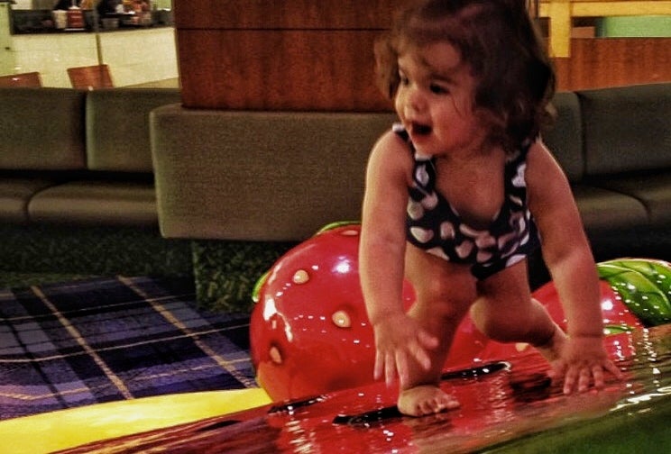 I spend the winter telling my children to hold their horses about going to playgrounds: “Soon it will be warm and we’ll be able to play outside all day long.” Spring comes, we hit a few local parks and then before you know it, the temperature soars and I hear myself saying: “It’s too hot out! Let’s play inside!” Well, I’ve found a happy medium that makes everyone happy—playground for kiddies and air conditioning for Mommy and baby.