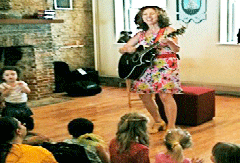 Now Little Airplane has opened a small performance space with some great shows. The space is incredibly intimate. Seeing Laurie Berkner in the space's inaugural performance feels like hanging out with your favorite kids artists in their living room with a back-stage pass for everyone. Everyone sits on the floor and the space was a little bit overfilled, but the kids could not have been more thrilled. After the show there was a radio interview where Laurie answered kids' questions and then she hung out and said hi to everyone who hung around. Kids got their pictures taken and lots of hugs were shared.