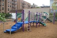 This past May, I attended an amazing playground build at East Harlem's 103rd Street Community Garden, which was co-sponsored by KaBOOM!, Disney and the New York Restoration Project. Since it's just one component of the 13,000-square-foot site's overhaul, it won't reopen until this fall. When it does, there will also be basketball courts, picnic tables, barbecue pits and a community garden.