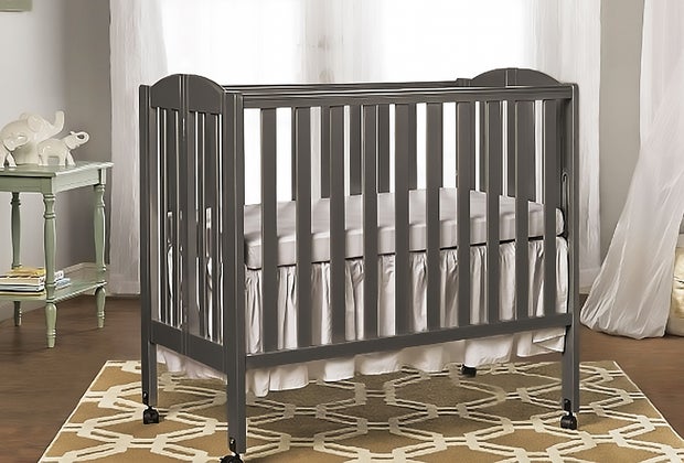 Find a small crib on wheels that can easily fit through the bedroom door, so you can move the crib from room to room as needed. This gives you the best of both worlds. You have the living area to yourself during nap times and early bedtimes, and you have your bedroom to yourself overnight and don't have to sleep in the same room with your baby unless you choose to. We rolled our babe out to the living room every night when we went to bed for over a year—and it never woke him up! (My pick: Dream On Me 3 In 1 Portable Convertible Crib. The foldable Babyletto is another popular option, and many parents opt to start with a co-sleeper, such as Arm's Reach, that can be rolled right up to the bed for nursing in those early weeks and months.