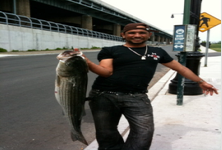 Photo of the Week: This guy was waiting for the bus with us on Randall's Island last weekend and was dyin to show us the colassal striped bass he caught out of the East River. Believe me, it wasn't the worst smelling thing on the bus that day.