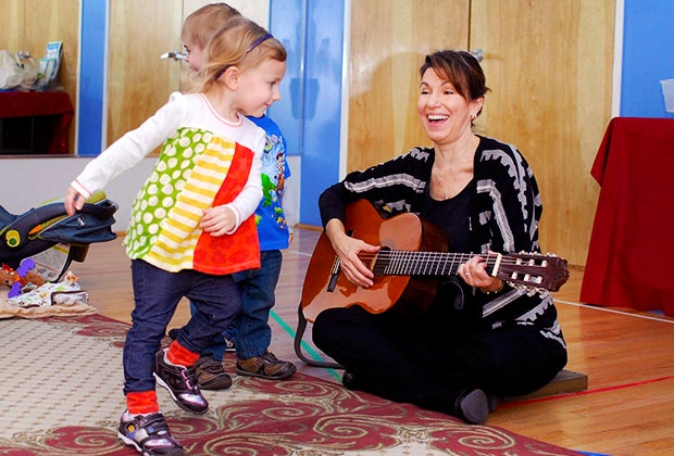 Classes are taught by talented, enthusiastic musicians who lead parents and children with singing, guitar playing, and fun activities.