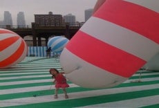 It was rainy and windy the day we visited Rainbow City, which was created by two-person art team FriendsWithYou. The upside: No lines and lots of action from the suspended orbs, which kids are allowed to poke and prod without reprimand. The downside: Some of the inflatables weren't on display, or had limited access. A large, white blob (which, according to a staff member, was meant to recall childbirth as you emerged from a thin hole) wasn't letting people in due to the breeze. Frankly I'm kind of glad we didn't go there.