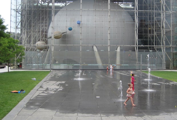 This is the coolest spot to visit with your toddler when it's nice out. The rooftop terrace holds a perfect little park that's centered around a stone patio with jumping fountains that children can run around and play in. There is a grassy area around the perimeter and several tables with umbrellas that are perfect for a picnic. The terrace gives a great view of the Planetarium and down onto a dog run. There isn't much shade around the fountains so bring sun protection. Enter for free up the stairs on the north side of the Museum of Natural History, or go inside the museum and take the elevator.