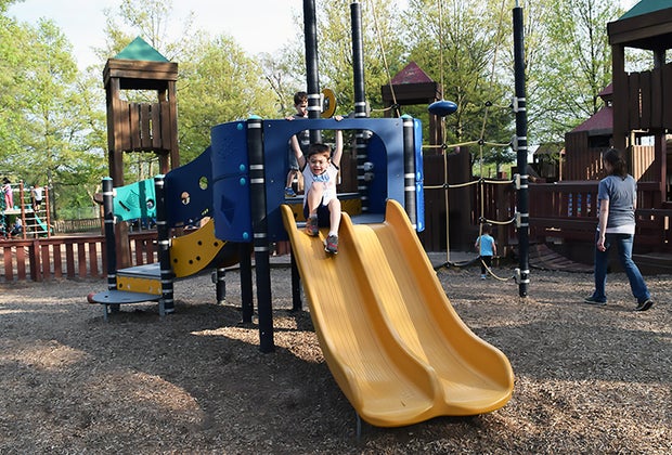 This 16-acre park is a calm haven in the middle of Millburn and its surrounding neighborhoods. Home to the city’s basketball and tennis courts as well as a community center, the park also boasts walking paths, picnic areas for family gatherings, and a playground shaded by thick trees. The playground includes all the usual equipment, including a few medium-sized slides, swings, rocking animals, and even a sandbox. Since the playground area is fenced in and relatively small, it’s a sure bet that younger kids will enjoy morning play dates here.
