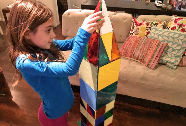 Have a Magna-Tiles building challenge. Photo by Sara Marentette