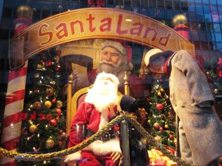 While there head inside and upstairs to take a seat on Santa’s lap in their over the top North Pole. If you need a break you can grab a seat in Greeley Square, they have food kiosks ringing the seating area and usually a festive light display of their own.