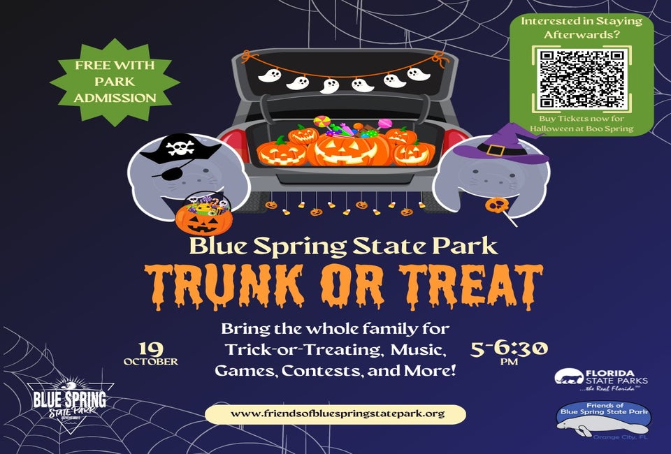 Visit Blue Spring State Park for a family-friendly trunk or treat with candy, games, music, contests, and more.