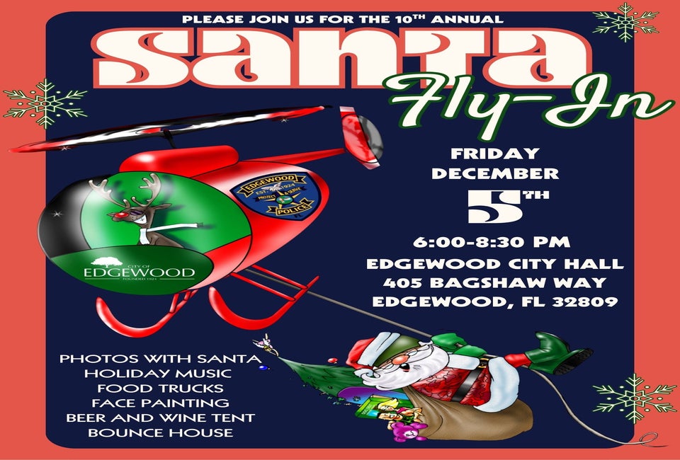 Experience the Magic at Edgewood’s 10th Annual Santa Fly-In! Santa’s arriving by helicopter — and you’re invited to watch it happen. Bring your family for a night full of holiday cheer, food, music, and fun!